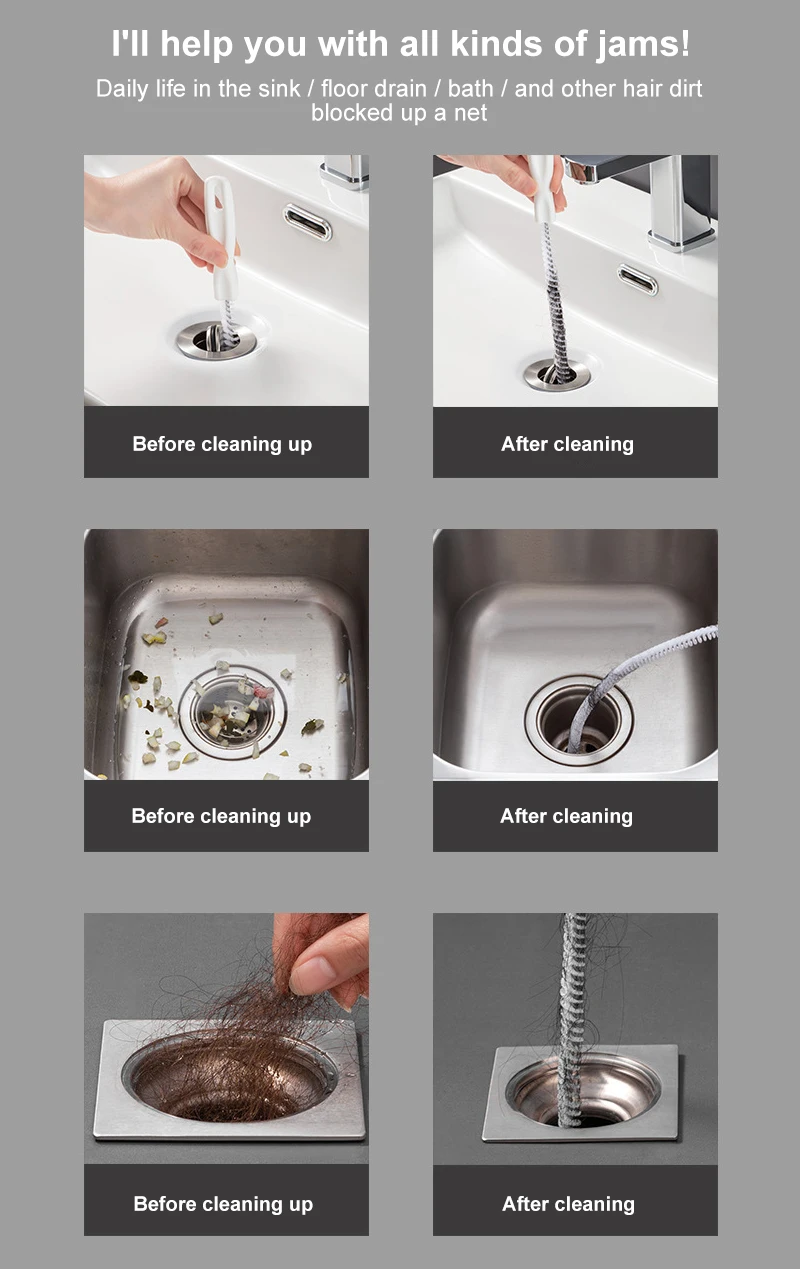 6. No Need To Use Chemicals Or Toxic Substances To Clean Drains And Clogs. Sewer Cleaning, Household Cleaning Hooks, Sink Drain Clogging, Hair Pipe Cleaning.