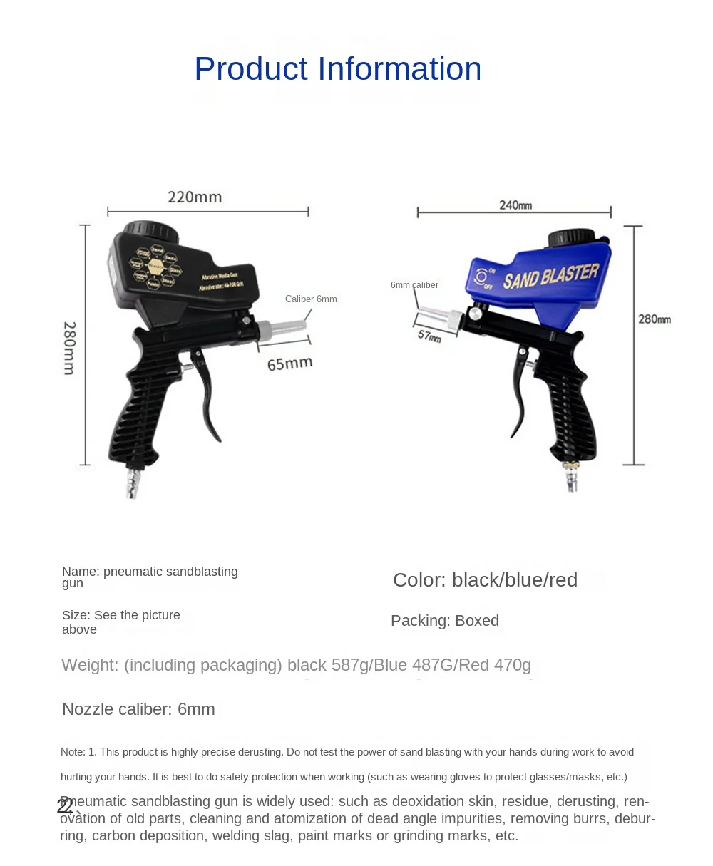 1. Sandblasting flow is adjustable, and nozzle can be replaced