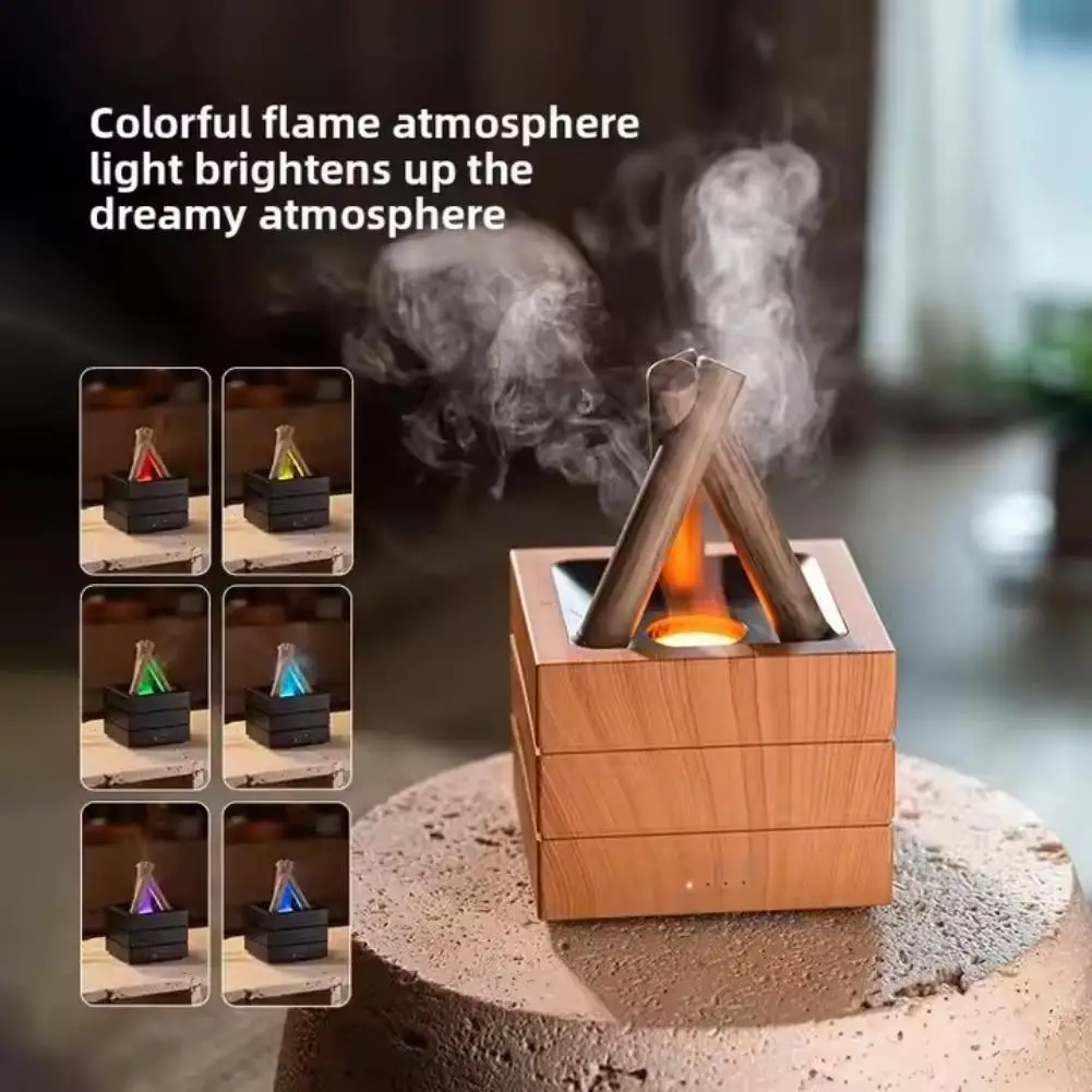 Product Name: Bonfire Aroma Diffuser, Household Flame Seven-Color Spray Ambient Light, Cross-border Large-Capacity Wood Grain Humidifier