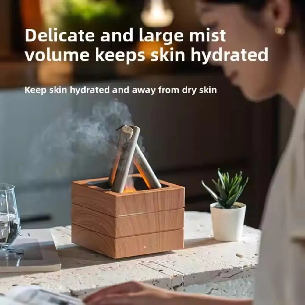 Light Large Capacity Wood Grain Humidifier (No Essential Oils) Winter Atmosphere Home Flame Spray Ambient Bonfire Aroma Diffuser