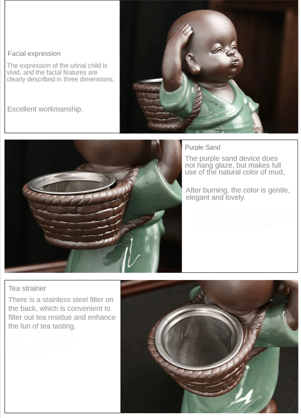 Tea Filter High-quality Little Monk Decoration Ornaments Doll Spray Ceramic Accessory Zisha Tea Strainer Traditional Process