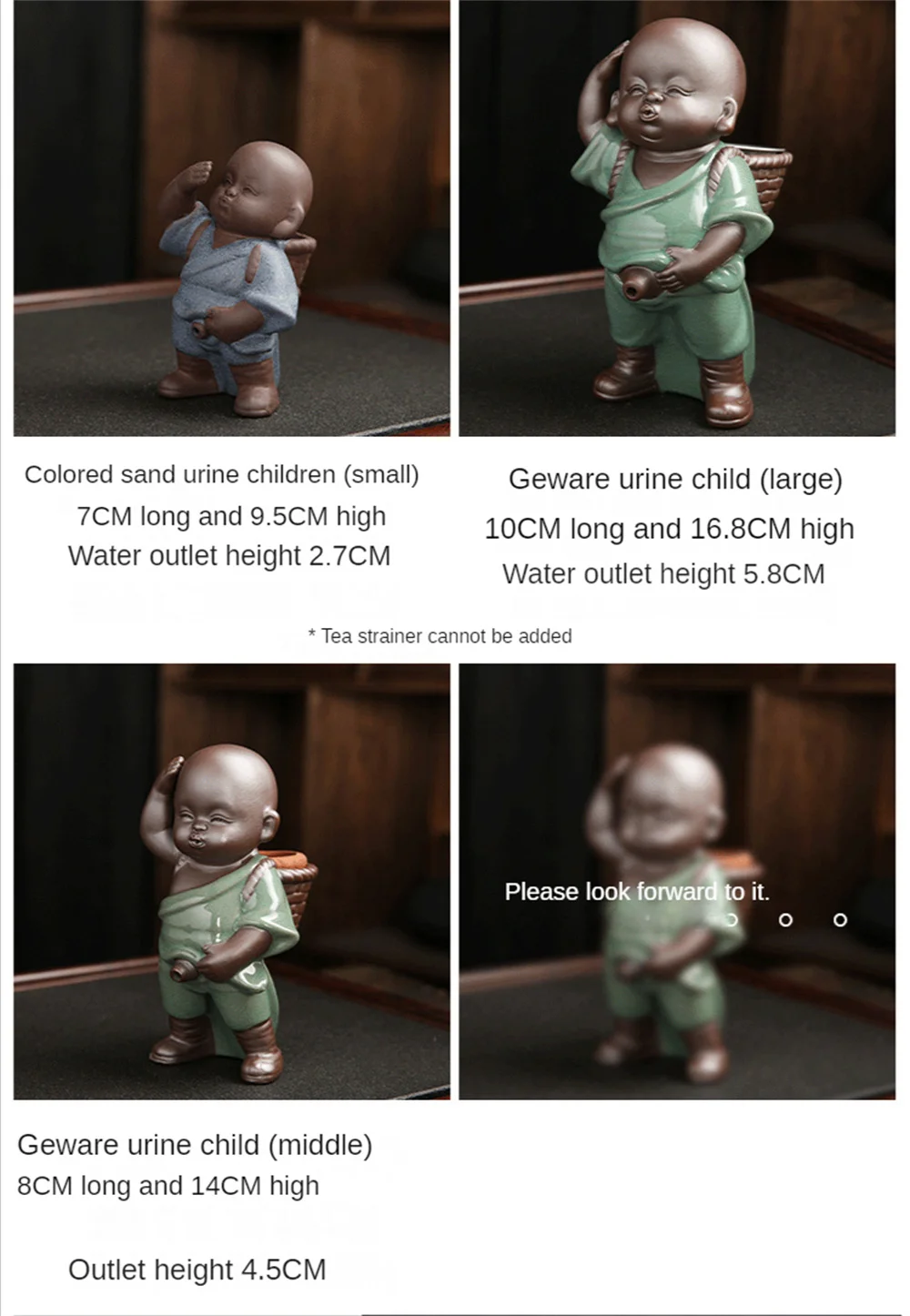 Ge kiln urine child (large): 10CM long * 16.8CM high * outlet height 5.8CM; Ge kiln urine child (middle): 8CM long * 14CM high * outlet height 4.5CM