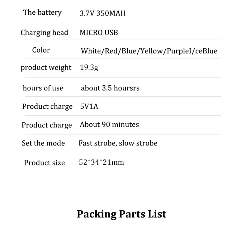 Light Color: White, Red, Green, Blue, Yellow, Purple, Sky Blue